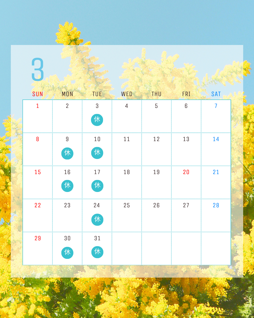 3月定休日 2026.03.02 3月の定休日となりますm(_ _)m 第5の月曜日は定休日となります‼ Tweet Share +1 Hatena Pocket RSS feedly Pin it 2月定休日