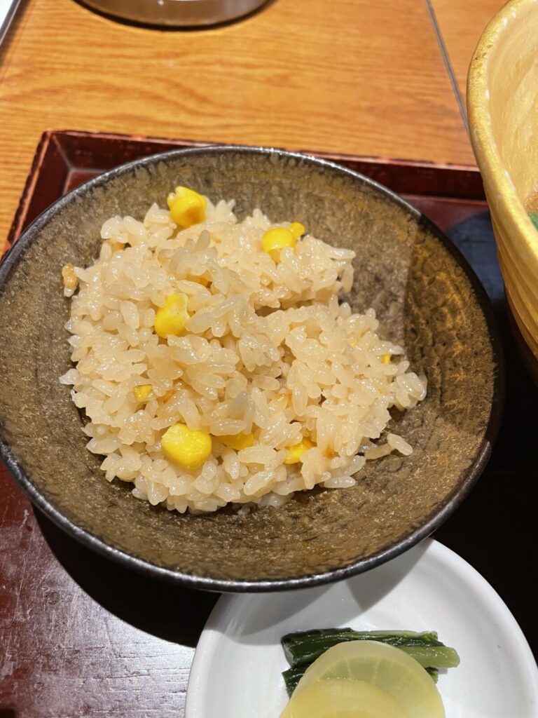 炊き込みご飯(日替わり)もお出汁が効いててコーンとよく合います(^^)